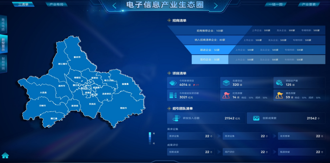針對目前地方存在的產業分析缺乏全面性、產業招商缺乏精準性,通過構建全方位大數據底座和全環節數字化賦能,實現對地方產業工作從產業分析、到產業調度、產業招商、產業培育的全閉環支撐。