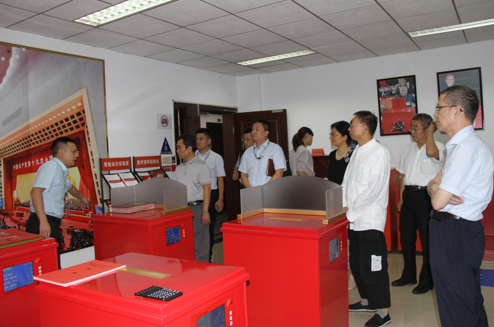 調研中科信息期間,袁本樸副主任等一行參觀了中科信息人工智能和數字會議系統展廳,史志明董事長匯報了公司基本情況、主要業務情況,以及公司未來的發展戰略。
