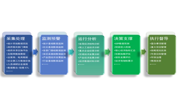 面向地方政府經濟管理工作的現實需要,實現了政府各部門經濟數據的全生命周期管理。整合政府各經濟部門數據資源,并對實時、交互、離散化和非結構的海量數據進行融合處理,建立可持續優化的各類監測分析模型、涵蓋“企業微觀經濟”、“產業中觀經濟”和“空間中觀經濟”以及“區域宏觀經濟”多個層面,覆蓋政府經濟管理過程中數據采集、監測預警、運行分析、決策支撐和執行督導多個應用場景,實現對地方高質量發展、產業布局優化的信息支撐價值,進而形成引領地方經濟發展的新引擎。