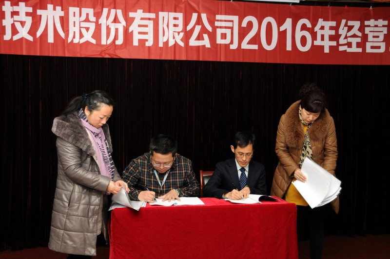 與會人員還學習了王偉書記代表公司黨委所做的題為《圍繞中心抓黨建 爭先創優促發展》的書面報告。會上,付忠良總經理還與各事業部、物管中心簽訂2016年經營管理目標責任書,對2015年度業績突出的集體、項目團隊、員工和新員工導師進行了表彰。會議由公司常務副總經理史志明主持。